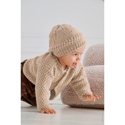 Bella 25 gram = ca. 250 meter 35% Katoen, 25%(baby)Alpaca, 30% Nylon, 10% Merinowol Naalden 3 - 3,5 Handwas Proeflapje 25 steken op 34 rijen = 10x10 cm Truimaat 38 - 40 7 bollen